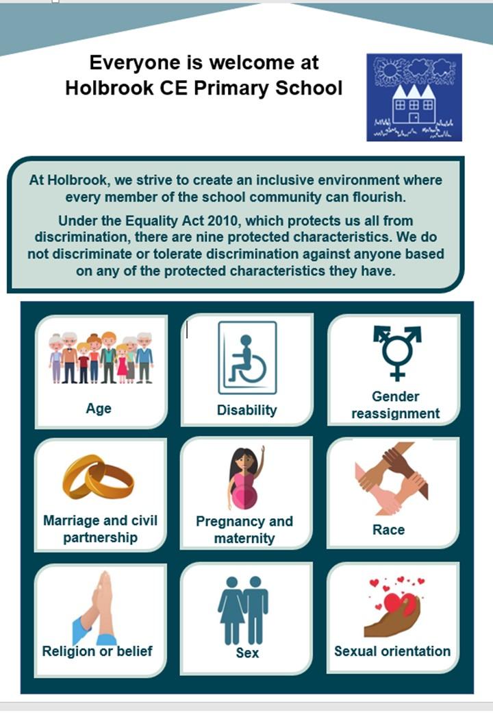 At Holbrook we take our responsibilities under the Public Sector Equality Duty seriously. Below, you can see some of the ways we proactively ensure that we meet our obligations to: